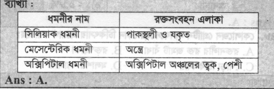 মানবদেহের পাকস্থলী ও যকৃতে রক্ত সরবরাহকারী ধমনী-
