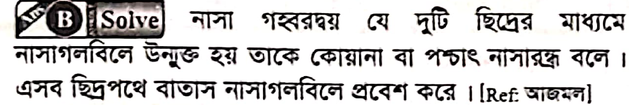 Correct Answer is: পশ্চাৎ নাসারন্ধ্র
