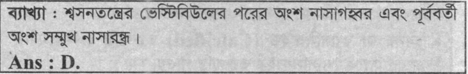 মানুষের শ্বসনতন্ত্রে ভেস্টিবিউলের পরের অংশ কোনটি?