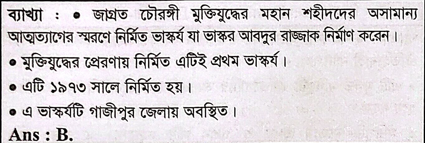 মুক্তিযুদ্ধের স্মারক ভাস্কর্য `জাগ্রত চৌরঙ্গী` কোন ভাস্কর নির্মাণ করেন?