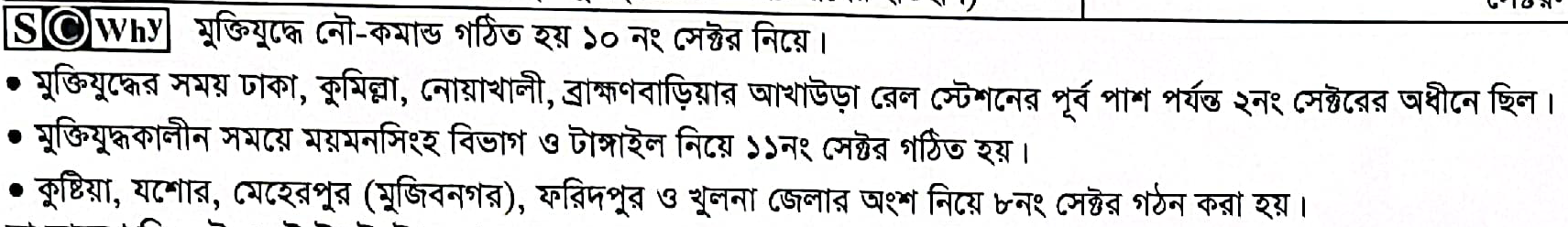 মুক্তিযুদ্ধে নৌ কমান্ড গঠিত হয় কোন সেক্টর নিয়ে?