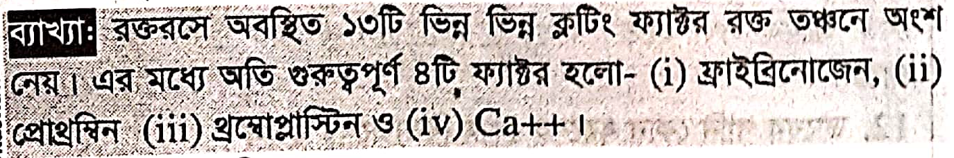 রক্ত জমাট বাঁধার জন্য কোনটির প্রয়ােজন নেই ?