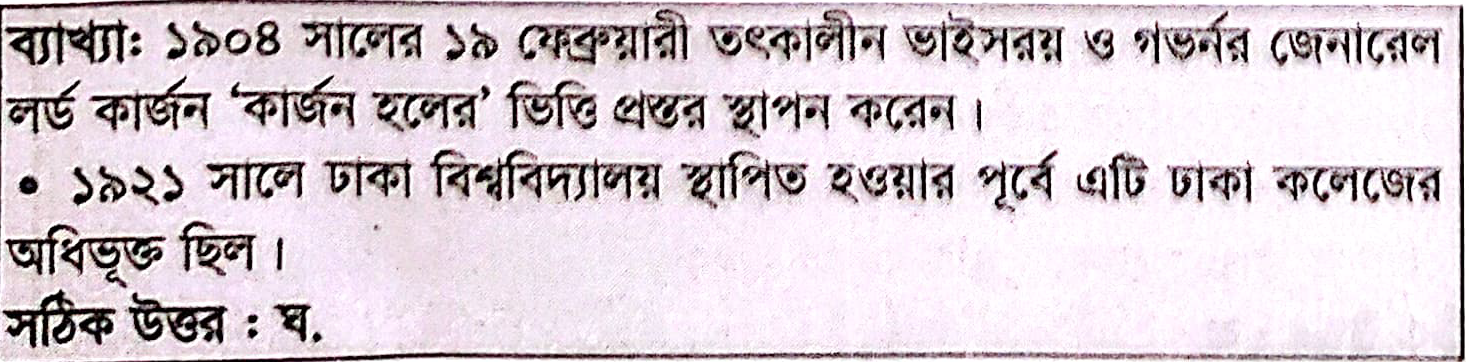 লর্ড কার্জন কবে `কার্জন হলে`র ভিত্তিপ্রস্তর স্থাপন করেন?