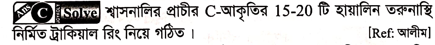 শ্বাসনালিতে তরুণাস্থির সংখ্যা কয়টি?