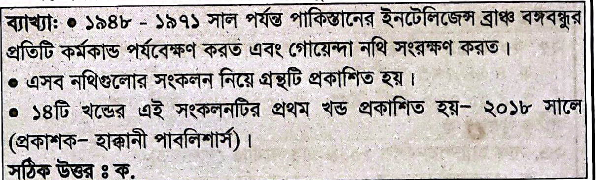 সিক্রেট ডকুমেন্টস অব ইনটেলিজেন্স ব্রাঞ্চ অন ফাদার অব দ্য নেশন বঙ্গবন্ধু শেখ মুজিবুর রহমান গ্রন্থের কোন খন্ড সম্প্রতি প্রকাশিত হয়েছে?