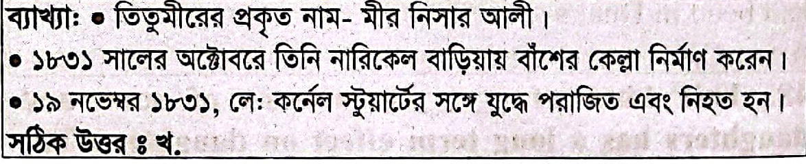 Correct Answer is: তিতুমীর
