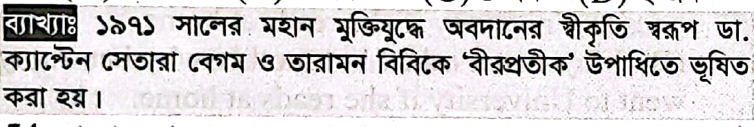 স্বাধীনতাযুদ্ধে অবদানের জন্য কতজন নারীকে বীরপ্রতীক উপাধিতে ভূষিত করা হয়?