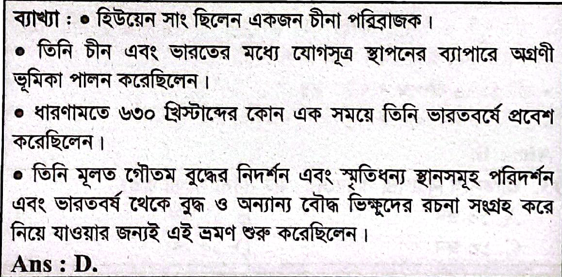 Correct Answer is: চীনা পরিব্রাজক