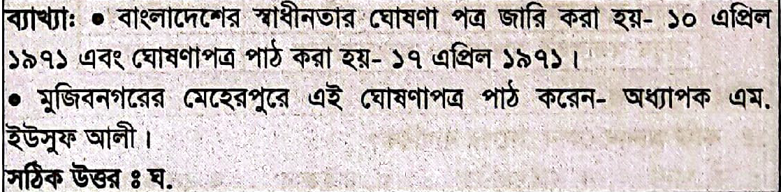 ১০ এপ্রিল ১৯৭১ স্বাধীনতার ঘোষণাপত্র পাঠ করেন কে?