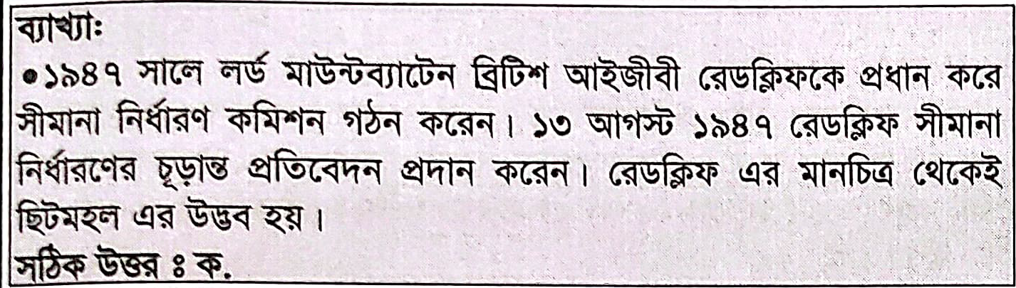 Correct Answer is: র্যাডক্লিফ কমিশন