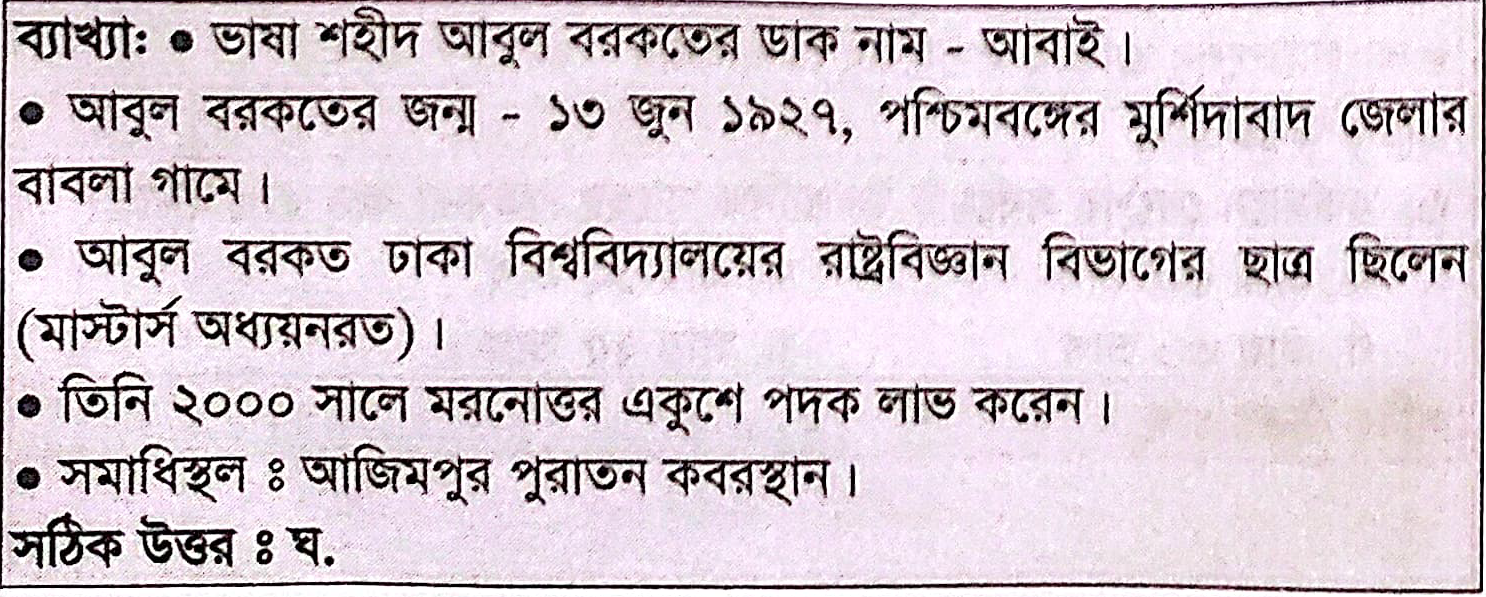 ১৯৫২ সালের ভাষা আন্দোলনে শহিদ আবুল বরকতের ডাক নাম কী ছিল?