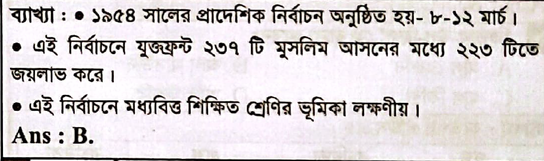 ১৯৫৪ সালের প্রাদেশিক নির্বাচনে কোন শ্রেণীর প্রভাব পরিলক্ষিত হয়?