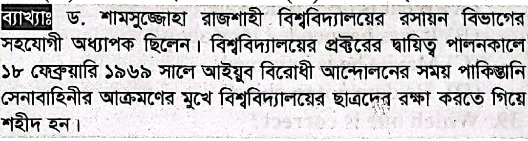 ১৯৬৯ সালের গণঅভ্যুত্থানে শহিদ ড. শামসুজ্জোহা নিম্নের কোন বিশ্ববিদ্যালয়ের শিক্ষক ছিলেন?