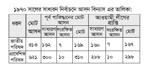 ১৯৭০ সালের নির্বাচনে জাতীয় পরিষদে তৎকালিন পূর্ব পাকিস্তানের আসন কতটি ছিল?