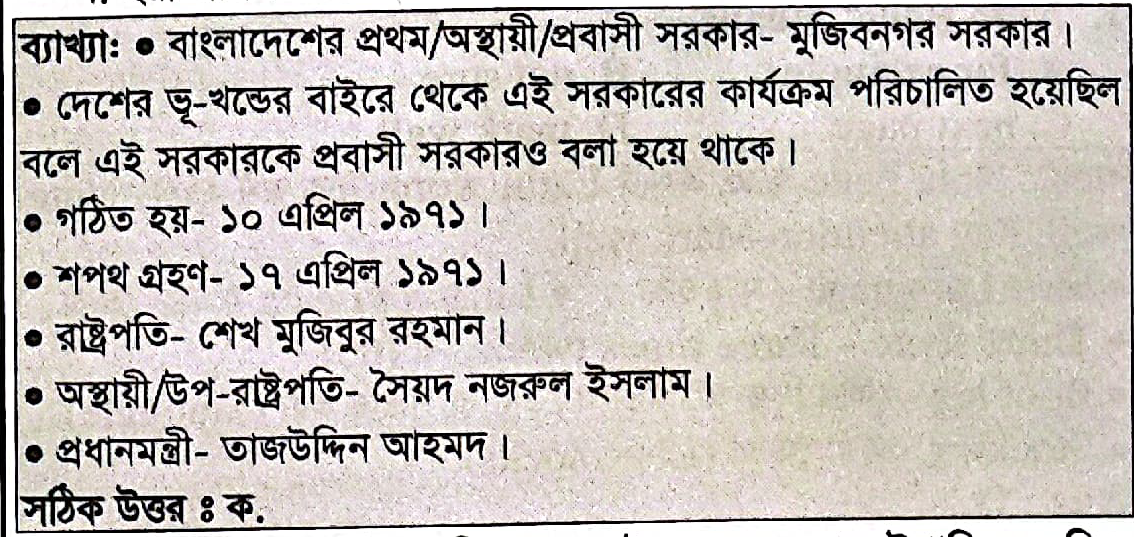 ১৯৭১ সালে বাংলাদেশের প্রবাসী সরকার কোন তারিখে গঠিত হয় ?