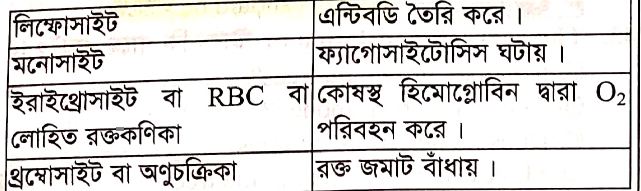 অক্সিজেন পরিবহনে সহায়তাকারী রক্ত কনিকার নাম কি?