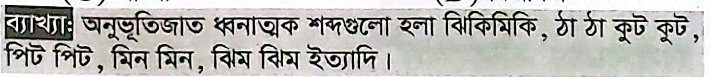 অনুভূতিজাত ধ্বনাত্মক শব্দ কোনটি?