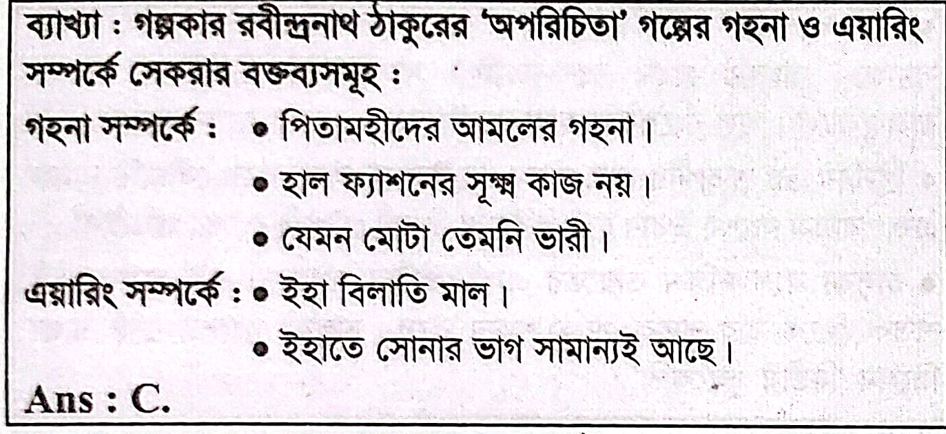 `অপরিচিতা` গল্পে একজোড়া এয়ারিং সম্বন্ধে সেকরার মন্তব্য-