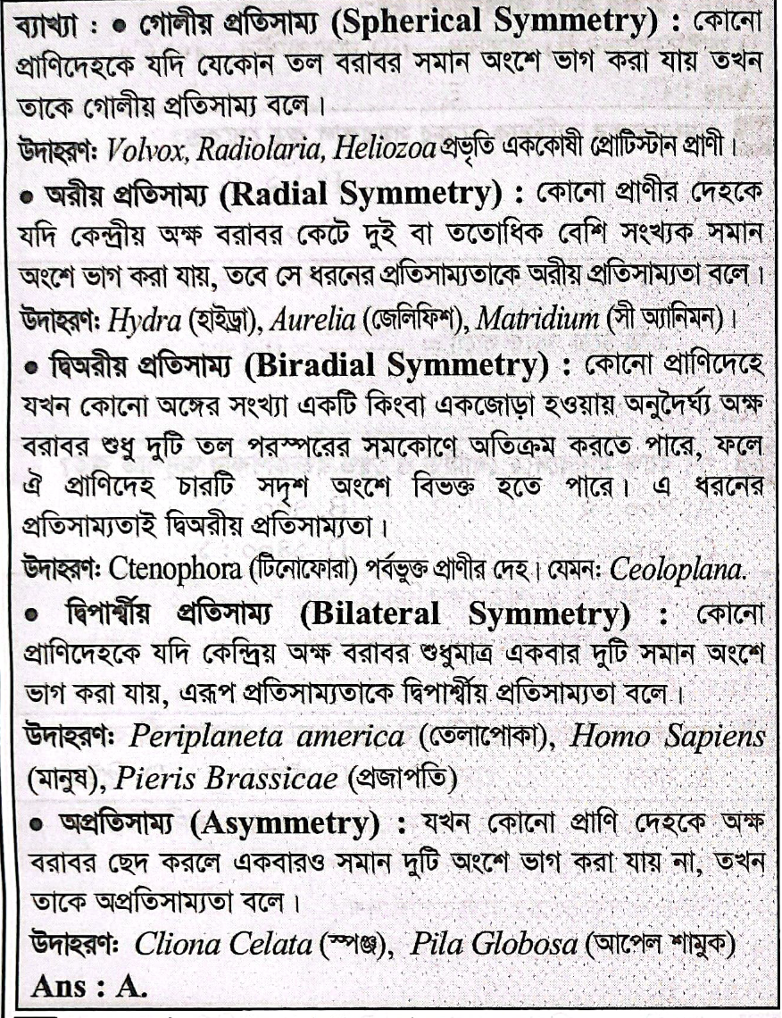 অরীয় প্রতিসাম্যতার উদাহরণ কোনটি?