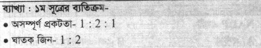 অসম্পূর্ণ প্রকটতার ক্ষেত্রে মনোহাইব্রিড ক্রসে F1উদ্ভিদের ফেনোটাইপিক অনুপাত-