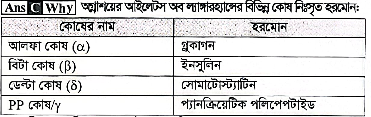 আইলেটস অব ল্যাঙ্গারহেনস থেকে নিঃসৃত হরমোন কোনটা.?