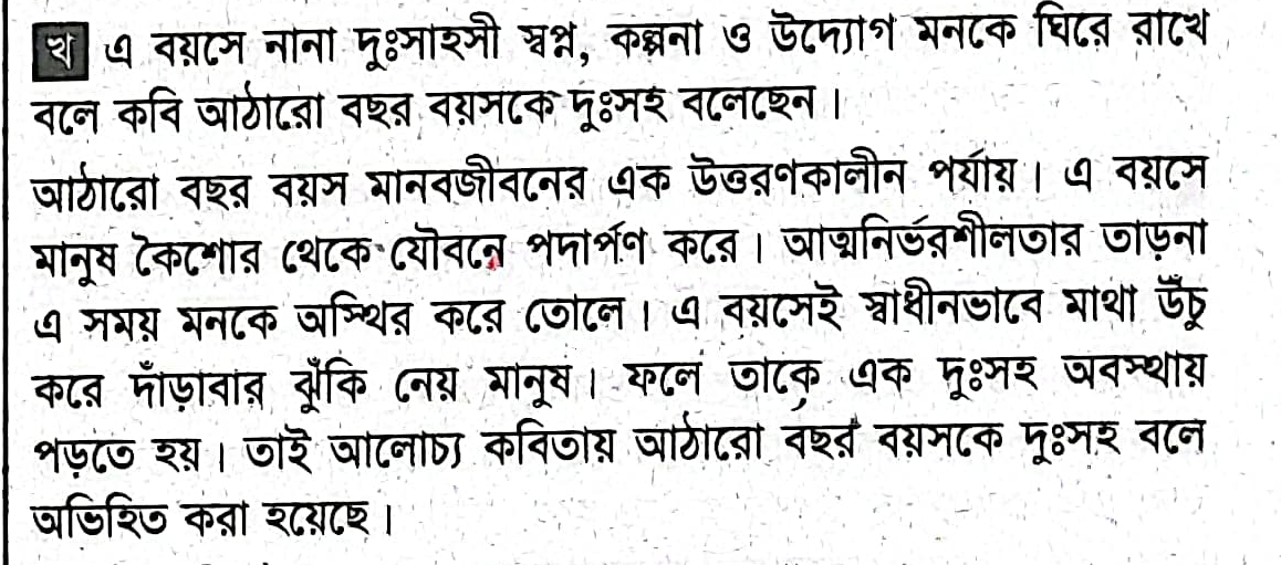 আঠারো বছর বয়সকে কবি `দুঃসহ` বলেছেন কেন?
