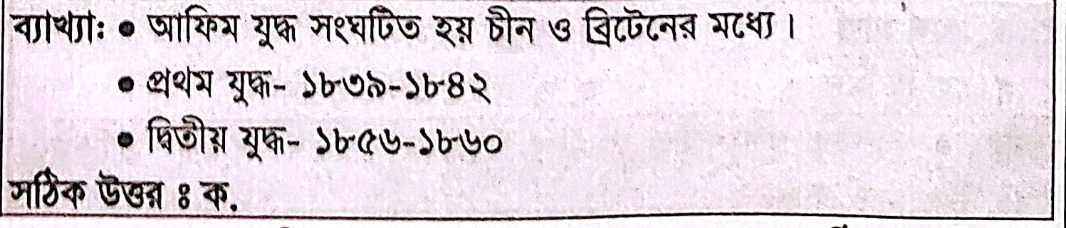 আফিম যুদ্ধ সংঘটিত হয়েছিল কোন কোন দেশের মধ্যে ?