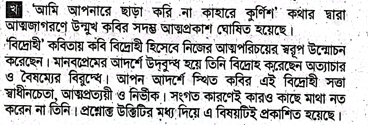 `আমি আপনারে ছাড়া করি না কাহারে কুর্ণিশ!`- ব্যাখ্যা করো।
