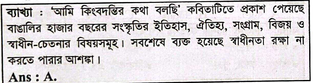 `আমি কিংবদন্তির কথা বলছি` কবিতাটিতে কোন ভাবটি মুখ্য?