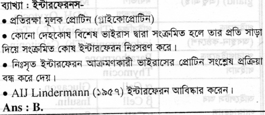 ইন্টারফেরন হলো ভাইরাস আক্রান্ত কোষ নিঃসৃত –