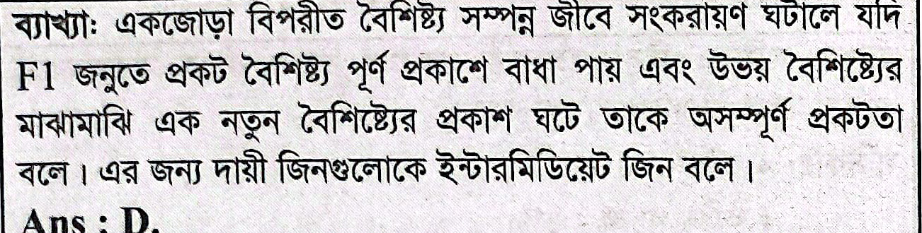 Correct Answer is: অসম্পূর্ণ প্রকটতা