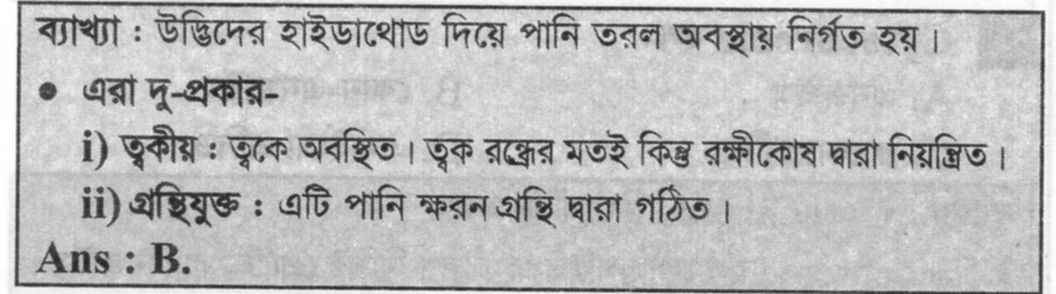 উদ্ভিদের কোন অঙ্গ দিয়ে পানি তরল অবস্থায় নির্গত হয়?