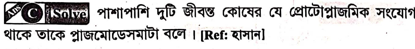 উদ্ভিদের জীবন্ত এক কোষের সাথে অন্য কোষের প্রোটপ্লাজমিক সংযোগকে কি বলা হয়?