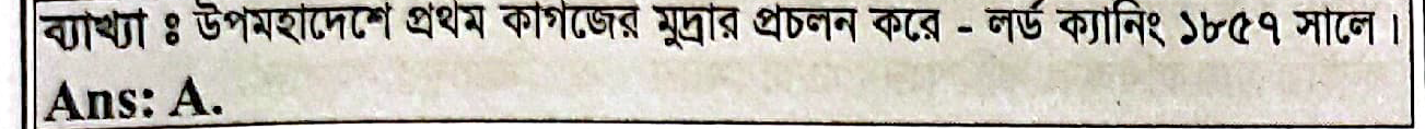 উপমহাদেশে প্রথম কাগুজে মুদ্রা চালু হয় কত সালে ?