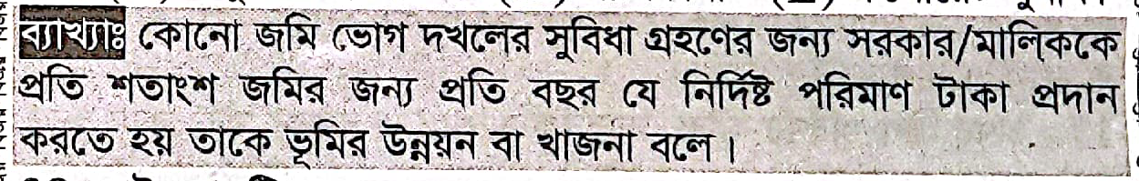 Correct Answer is: খাজনা