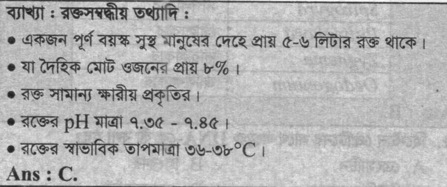 একজন পূর্ণ বয়স্ক সুস্থ মানুষের দেহের মোট ওজনের কত শতাংশ রক্ত থাকে?