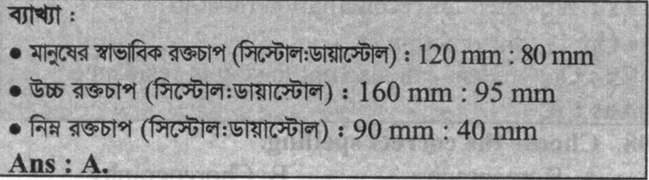 একজন সুস্থ প্রাপ্ত বয়স্ক মানুষের স্বাভাবিক সিস্টোলিক চাপ কত ?