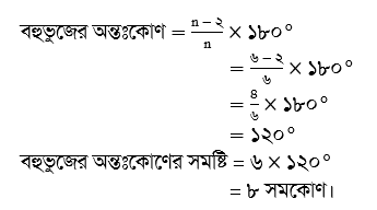 একটি বহুভুজের বাহুর সংখ্যা ৬ হলে, বহুভুজের অন্তঃকোণগুলোর সমষ্টি কত হবে?