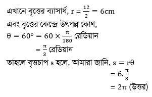 একটি বৃত্তচাপ কেন্দ্রে 60∘ কোণ উৎপন্ন করে। বৃত্তের ব্যাস 12cm হলে বৃত্তচাপের দৈর্ঘ্য কত?