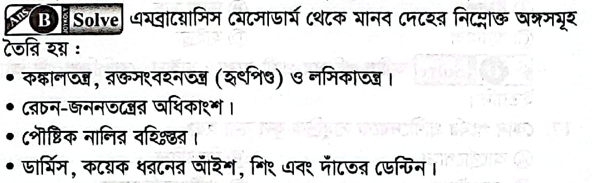 এমব্রায়োসিস মেসোডার্ম থেকে মানব দেহের কোন অঙ্গ তৈরি হয়?