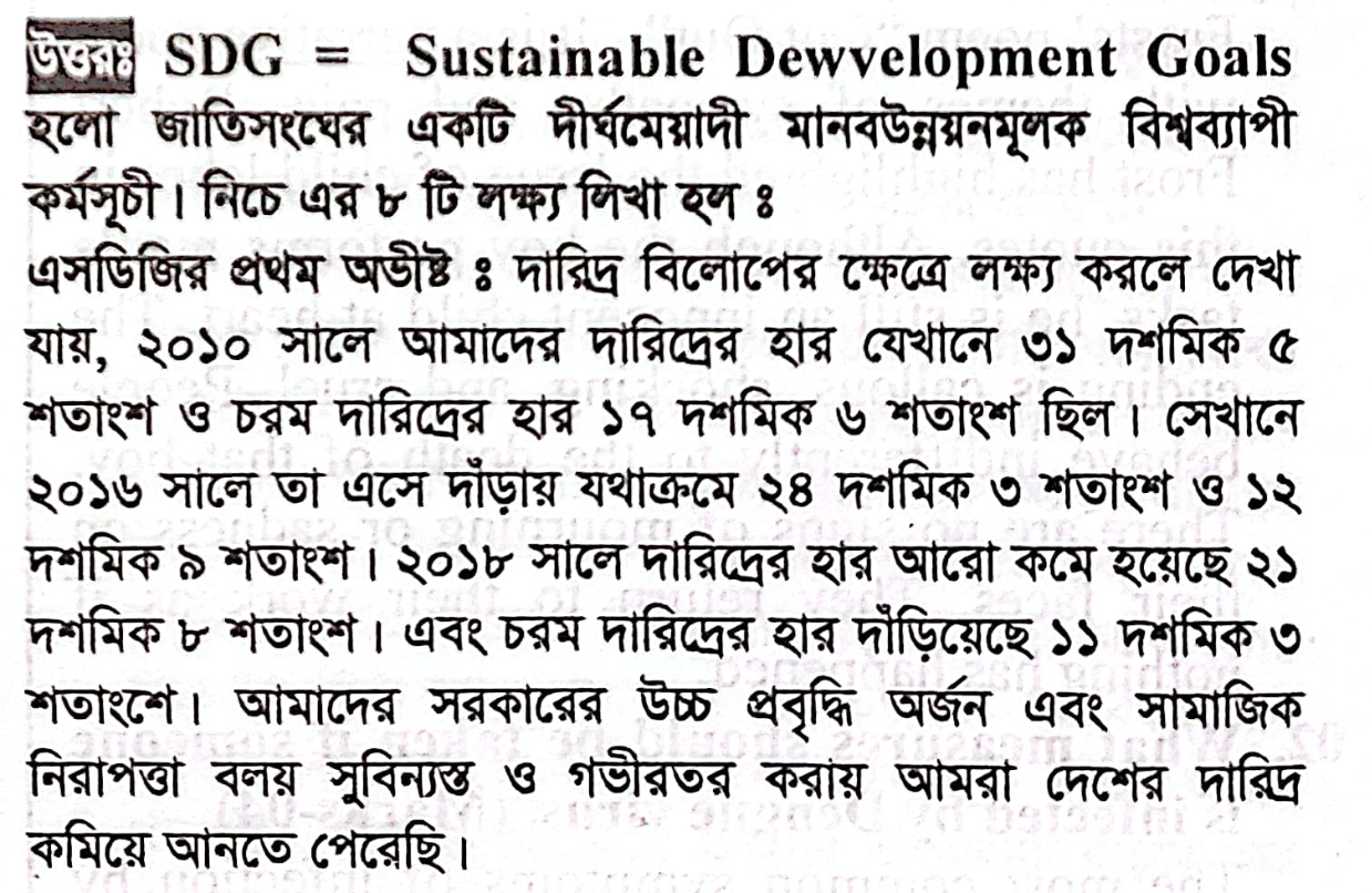 এসডিজি(SDG) কী ? এর আটটি লক্ষ্য লেখ। (What is SDG? Write down its eight goals.)