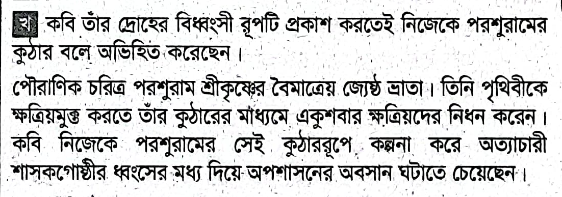 কবি নিজেকে `পরশুরামের কঠোর কুঠার` বলেছেন কেন?