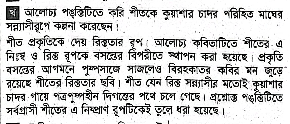 `কুহেলি উত্তরী তলে মাঘের সন্ন্যাসী`-শব্দের অর্থ কী?