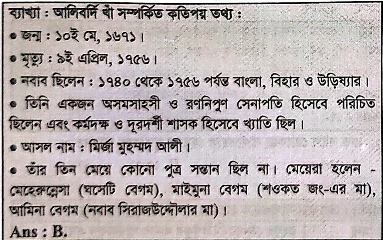 Correct Answer is: আলিবর্দি খাঁ
