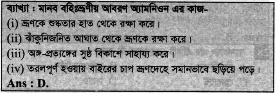 Correct Answer is: ভ্রূণকে শুস্কতার হাত থেকে রক্ষা করে