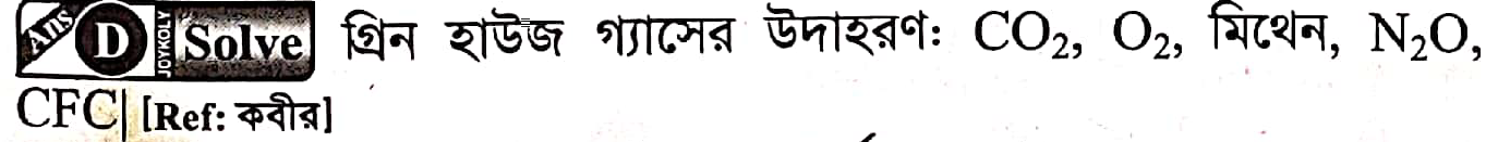 কোনটি গ্রিন হাউজ গ্যাস নয়?