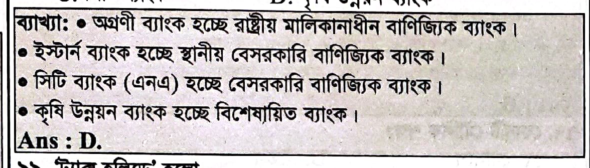 Correct Answer is: কৃষি উন্নয়ন ব্যাংক