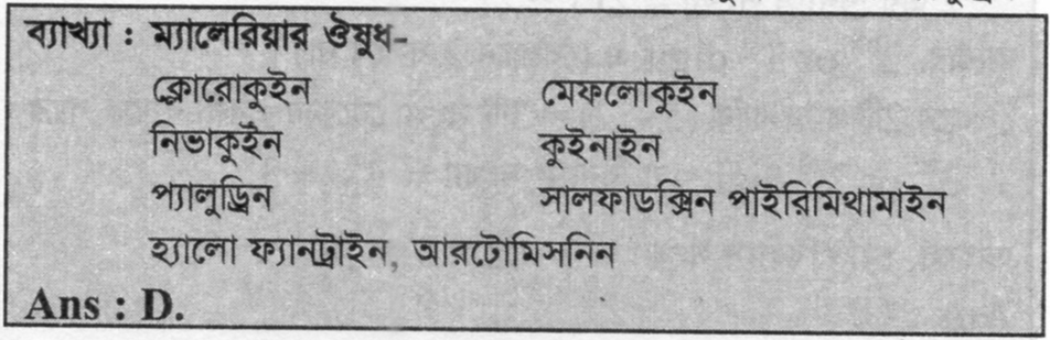 কোনটি ম্যালেরিয়ার ওষুধ?