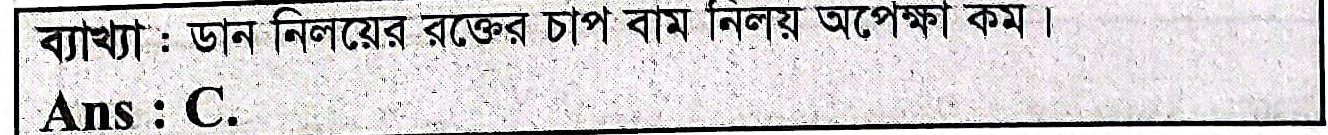 Correct Answer is: ডান নিলয়ের রক্তের চাপ বাম নিলয় অপেক্ষা বেশি