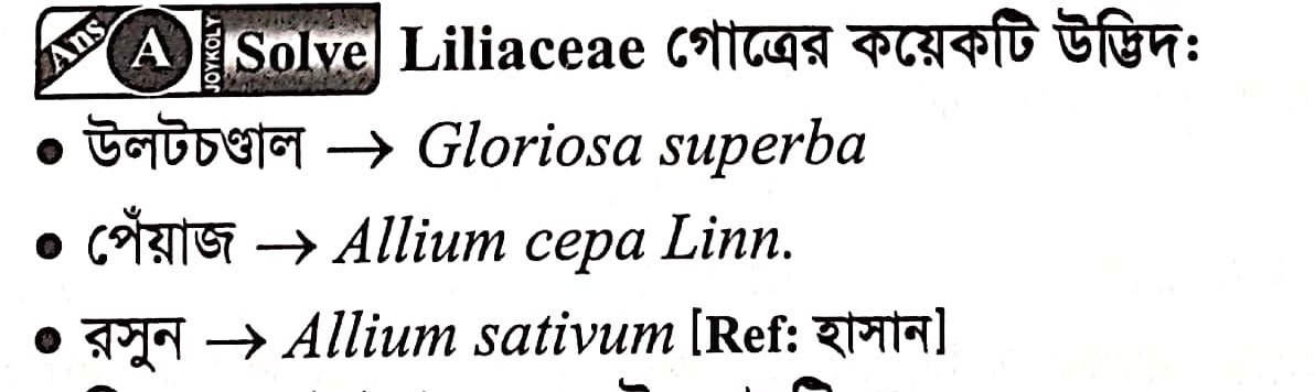 কোনটি Liliaceae গোত্রের উদ্ভিদ?